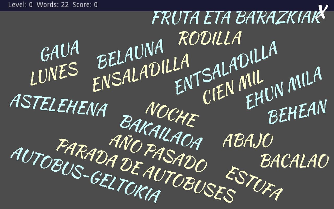 أنا مطابقة الكلمات euskera-castellano مع 10 مستويات من الصعوبة.